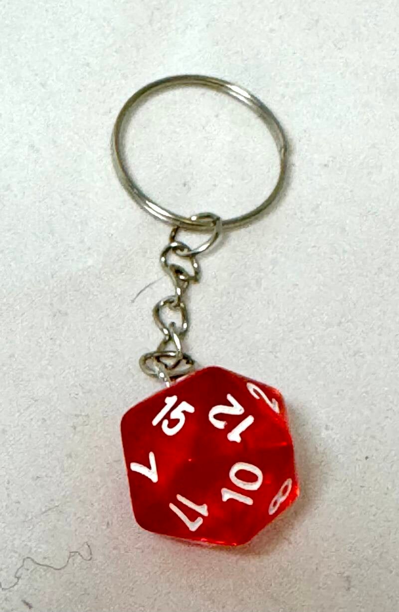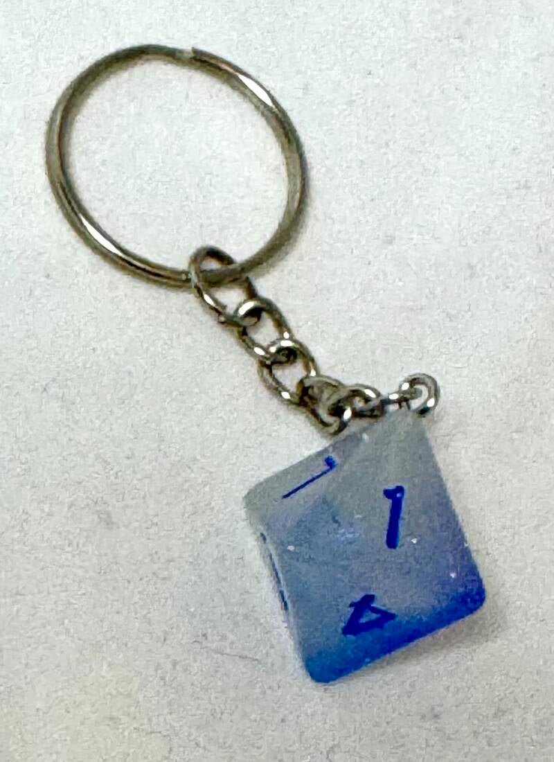 Portachiavi con ciondolo fatto con dado in materiale acrilico fosforescente al buio